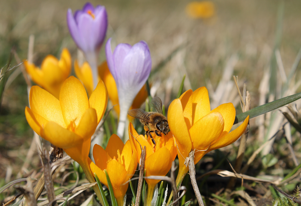 All in all exist circa 80 different wild crocus species. These blossomearlier than their large-flowered hybrids, are more robust and are distinctly better suited for a planting out in meadows. These should be mowed only after withering of the leaves. Frequent species are the yellow Snow Crocus (Crocus chrysanthus), the blue-purple Woodland Crocus (Crocus tommasinianus) and the blue Spring Crocus (Crocus vernus).