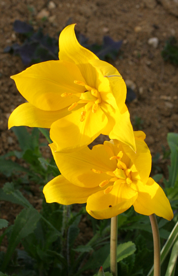 To the greatest extent wild tulips are concering their habitat preferences relative uncomplicated. Ideal is moisture in spring and warm and dry summers. During this time the new produced tulip bulbs are maturing. Waterlogging and voles niggle wild tulips. Best planting time is between the end of September until early December on frost-free days. Give the tulip bulps at least twice to three times as deep into earth as the bulb is high. It is advantageous if you give at first some sand into the planting hole and hereupon put the bulb. Wild tulips blossom for years and set regularly seeds, which can be left on the plant until they are matured. By sowing, stolons and side bulbs many species produce larger stocks in the long term. However, until a by sowing propagated tulip blossoms for the the first time, it may last five years.