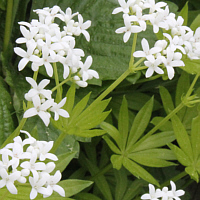 The well-known Sweet Woodruff is a member of the Coffee family (Rubiaceae). The nutrient-loving species is predominantly to be found in deciduous forests. The leaves are whorled arranged, the small, white blossoms in long-stemmed pleiochasia. Blooming time is from May to June. For the specific scent are coumarin compounds responsible, which are especially released during withering.