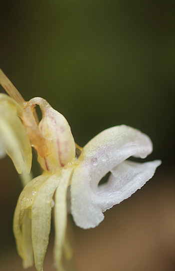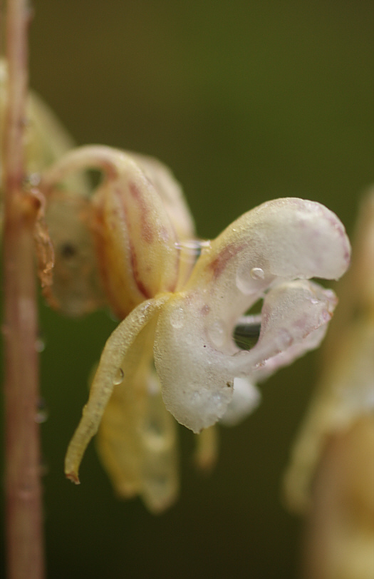 As one of the few European orchid species the plant is without any chlorophyll and so a myco-heterotrophic plant. Therefore the Ghost Orchid lives on its host fungi. The flowers are rather pale, rather great and not resupinate, what means that the lip doesn’t point downwards as is by orchids usual. In cases that an overground flower stays away, it is assumed that underground cleistogamy could happen, which means a self pollination of a closed flower.
