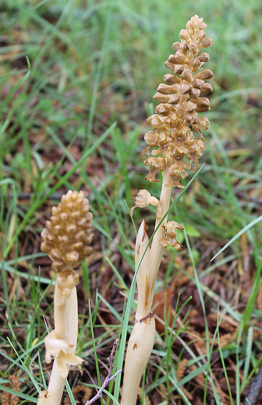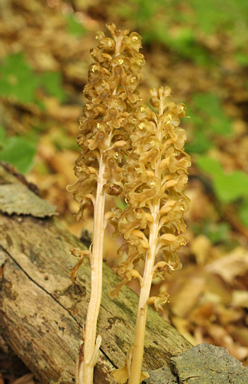 The genus of the Bird’s-Nest Orchids is in Southeast Asia with several species native. In Europe is only Neottia nidus-avis native, an interesting appearance. The species is without any chlorophyll. Therefore, this is a mycoheterotrophic plant. The plant gives all in all a rubber-like impression. The plant is very leathery, the leaves are degenerated to scale leaves, the flowers are brown like the rest of the plant. The Bird’s-Nest Orchid blooms from May to June and populates especially beech forests.